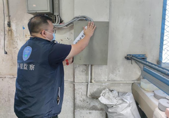 執法人員立即對該情況進行調查取證,並繼續對企業生產工序及廢水、廢氣汙染防治設施進行地毯式排查,發現該企業B棟廠房一樓設有6台壓鑄機(內置熔爐),其中2台壓鑄機內置熔爐燃燒的材料為生物質燃料,產生的廢氣未經處理直接排放,排放口有冒黑煙的情況。經查,該企業通過環評審批的必須是用電的壓鑄機熔爐,但企業於2020年4月擅自將其中2台改成了生物質熔爐。執法人員立即對該企業的打磨、拋光生產車間進行查封。